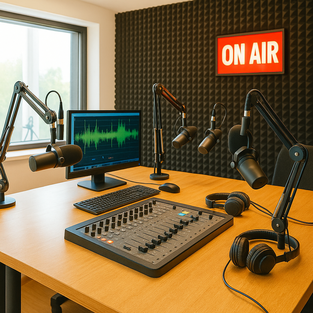 Voici le studio de Double MR, le cœur battant de la station. Capitonné, parfaitement éclairé, c’est là que les émissions prennent vie sous le regard du fameux panneau rouge ON AIR qui impose instantanément le silence. Derrière la vitre, les visiteurs observent l’équipe comme un petit théâtre moderne : les casques qu’on ajuste, les micros qu’on approche, les regards paniqués quand tout s’emballe.